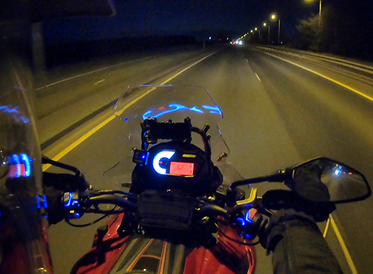 You really don’t have to add a lot to the bike for it to be ready for the long-haul, out the box it’s fab. I added heated grips and only recently this year added some fog lights, more for the winter nights, as the headlight alone isn’t brilliant. It’s a halogen main & high beam but has LED lights underneath it. They work better than the Honda’s weedy LED unit, but still not perfect. Indicators and tail light are LED, which begs the question why the headlight is halogen. The LEDs are super bright as you would expect.